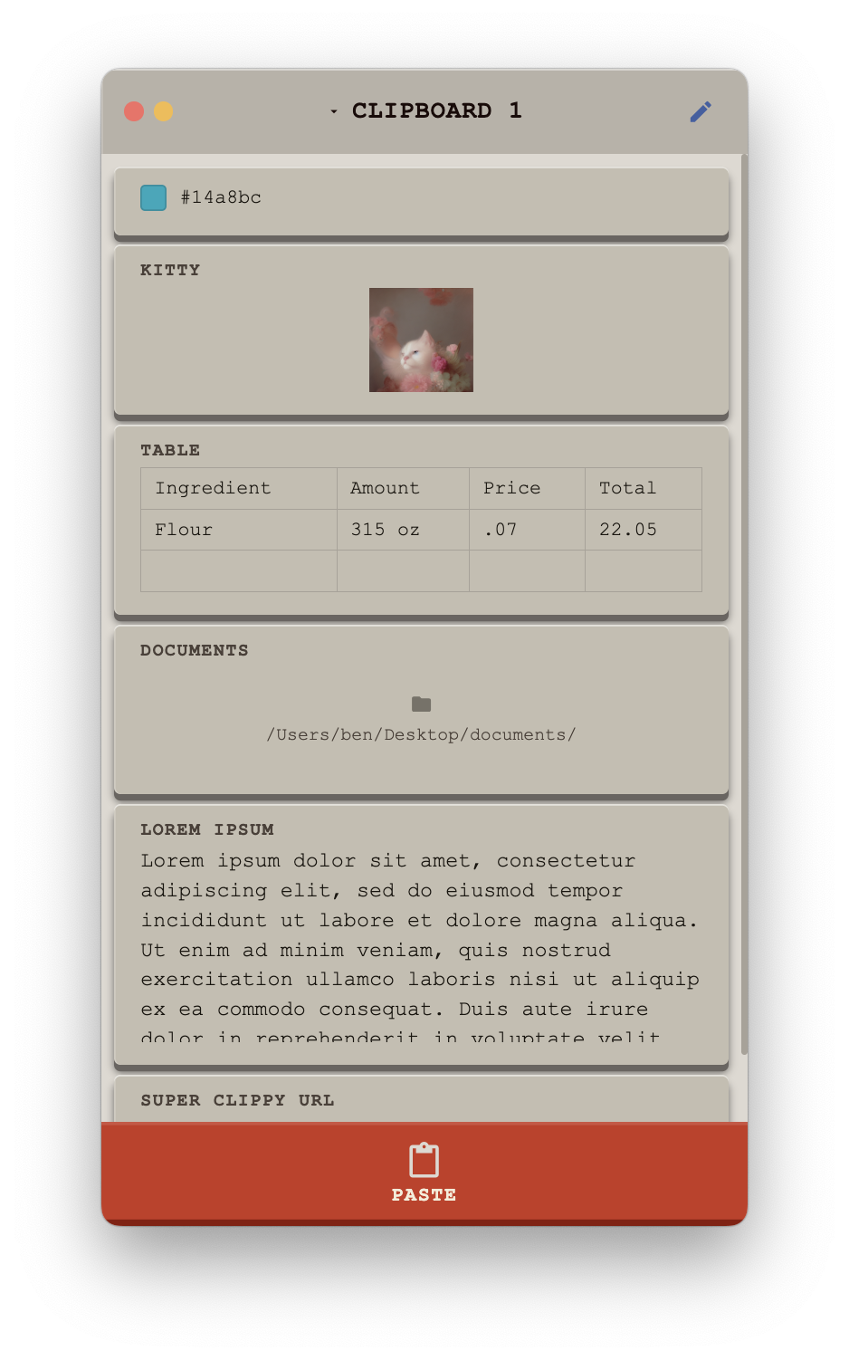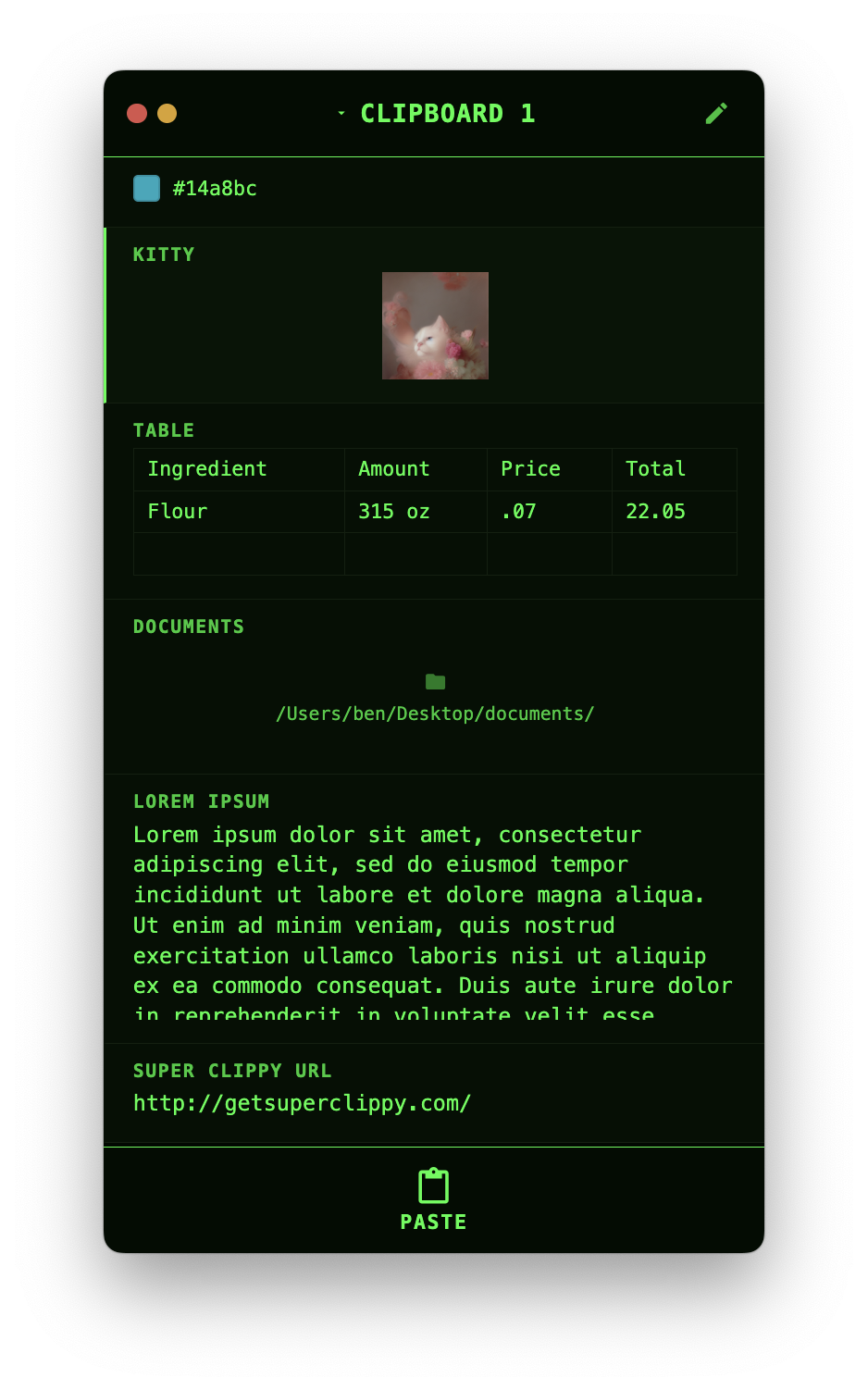 Super Clippy keeps everything you copy — text, images, files — organized across named clipboards. Switch between projects instantly. Paste anything in two seconds.
